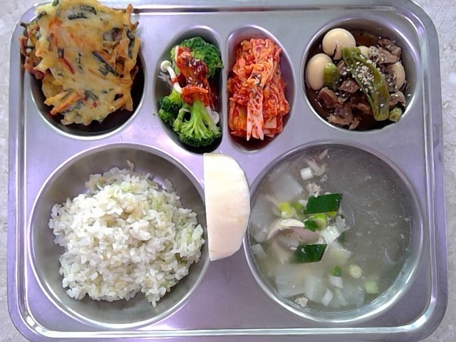 클로렐라쌀밥닭곰탕(15)쇠고기메추리알장조림(1.5.6.13.16)감자채전(6.9)배추김치(자율)(9)백일송이브로콜리초회(5.6.13)